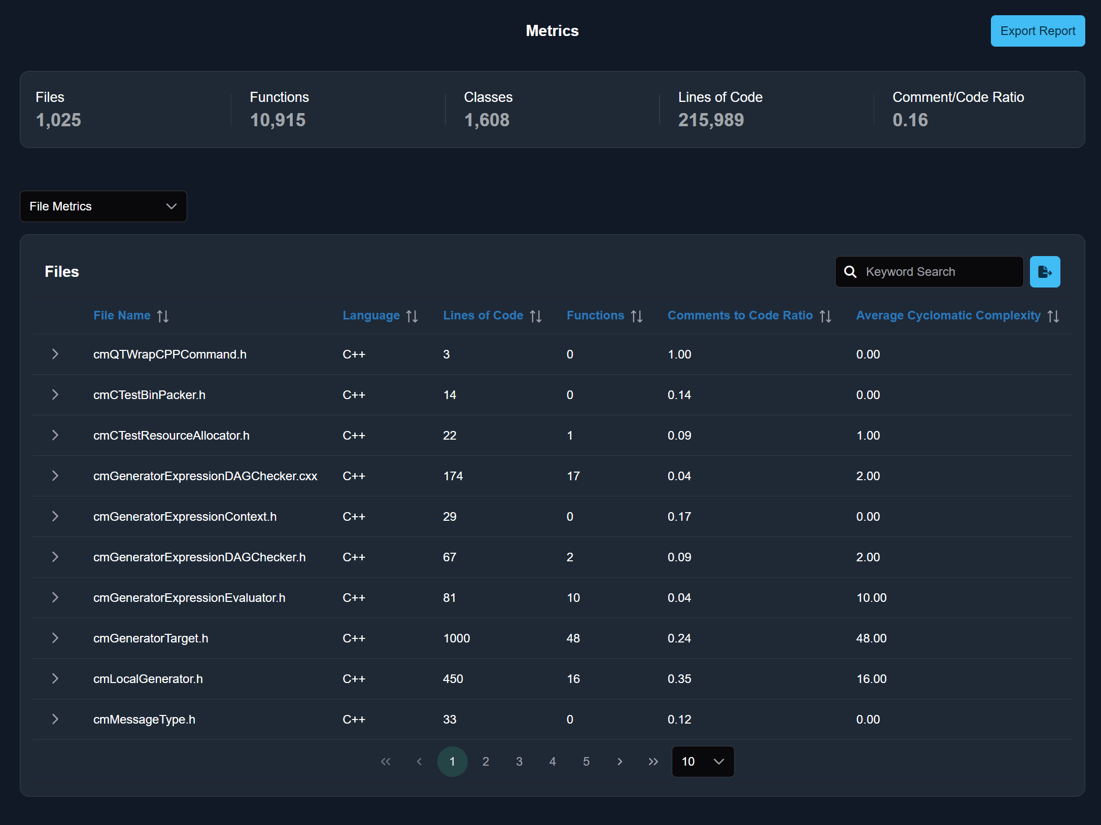 A single, consistent view of verified metrics: complexity, cohesion, coupling, and dependencies.